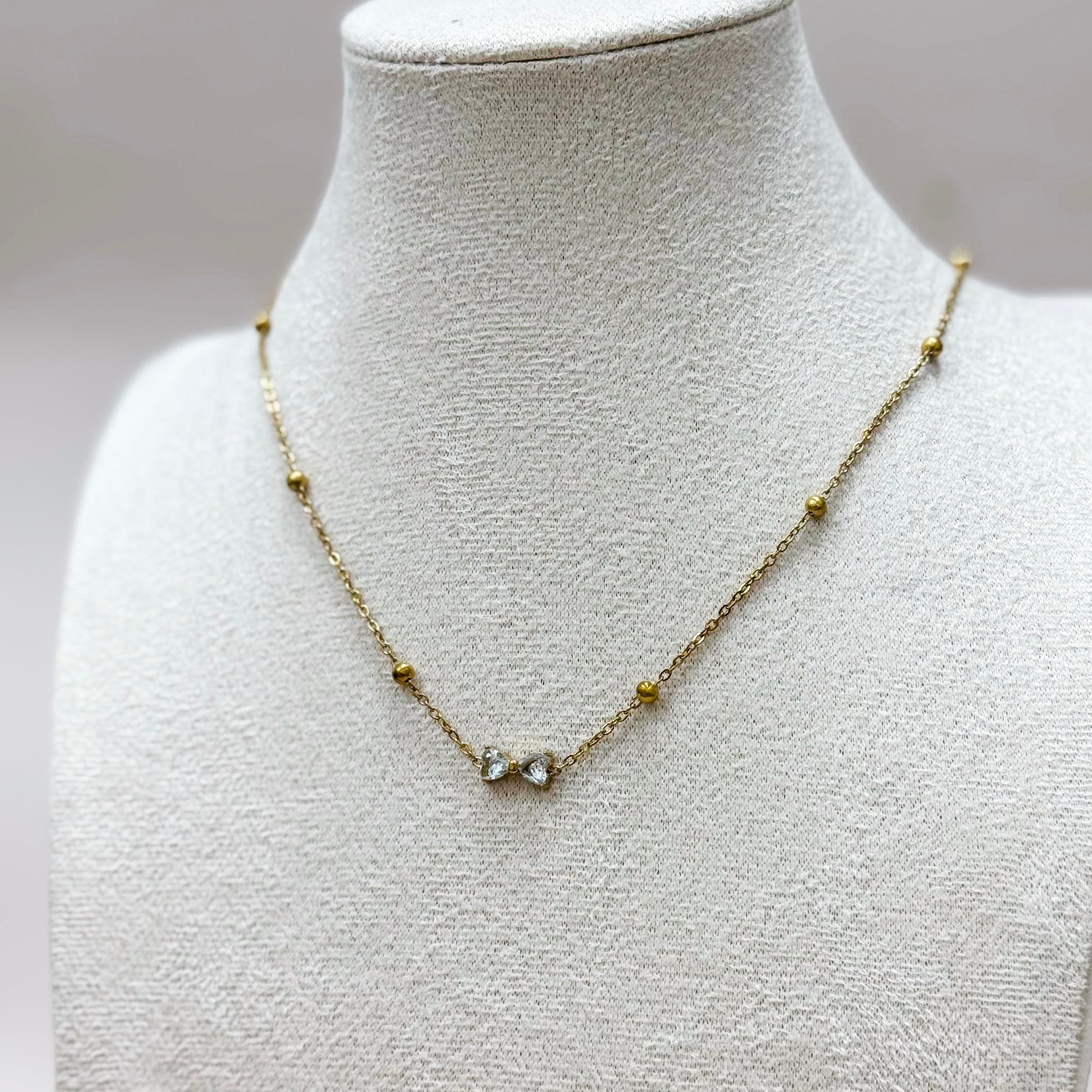 Bowlight Necklace features a fine gold chain accented with subtle beaded details and a dainty crystal bow centerpiece that catches the light effortlessly. Feminine, minimal, and timeless — made to layer or wear on its own for an understated glow.