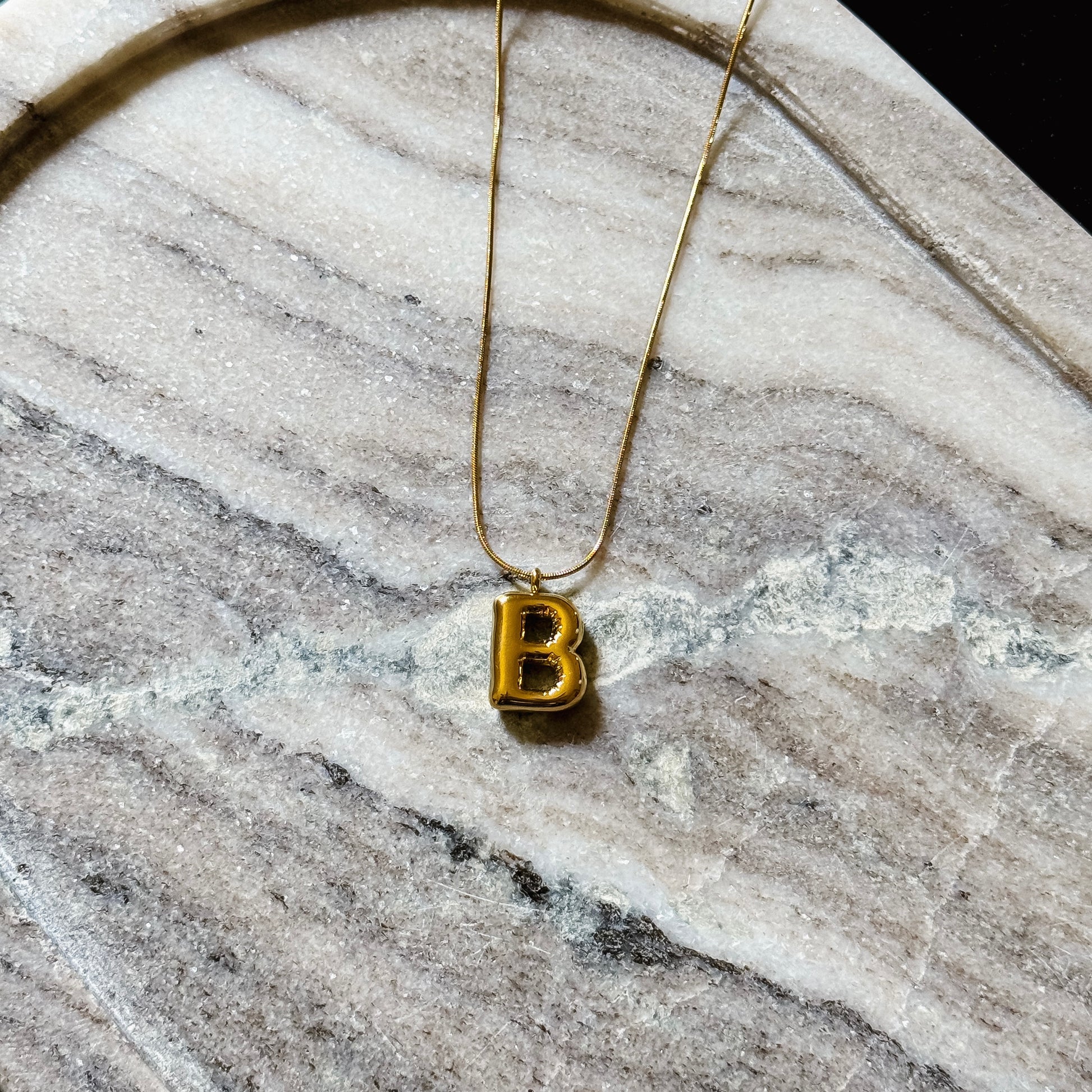 Our Bubble Initial Necklace is crafted from high-quality 18k gold-plated stainless steel and features a soft, sculptural letter charm on a sleek snake chain. Designed to shine solo or layer effortlessly, this piece makes a statement — just like you.