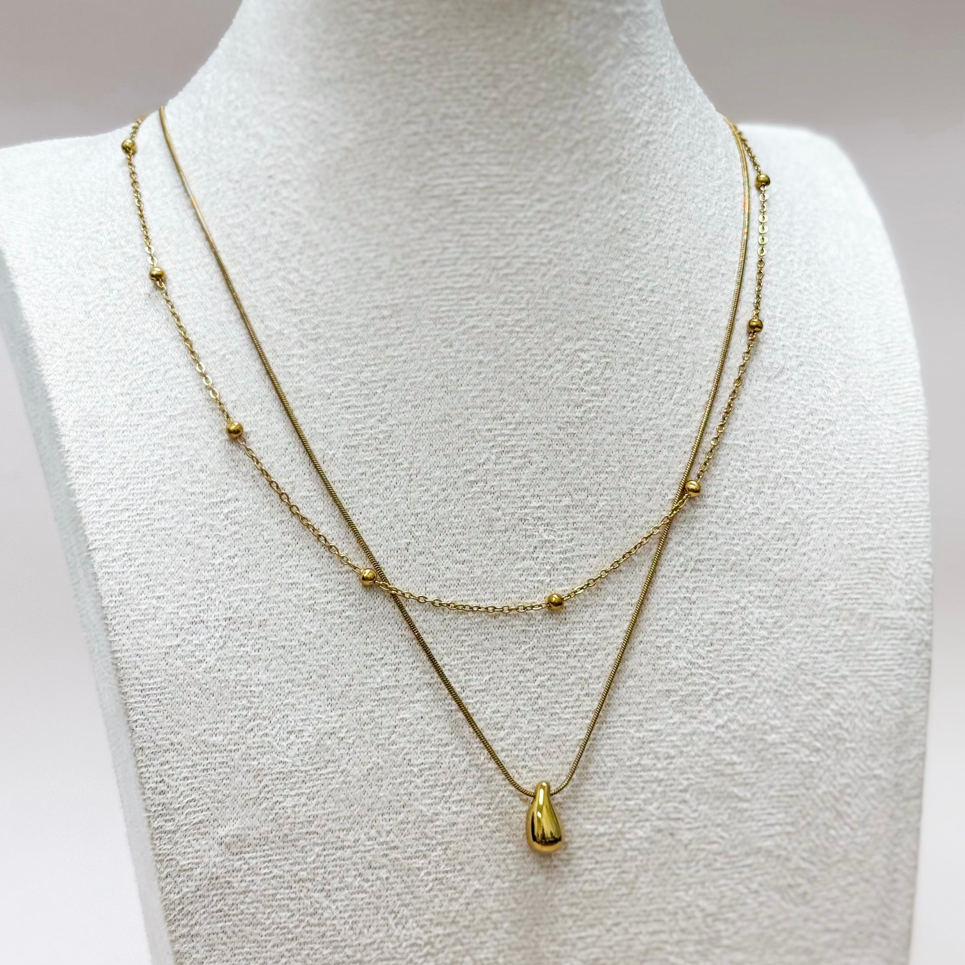 - Dainty beaded chain + minimalist drop pendant