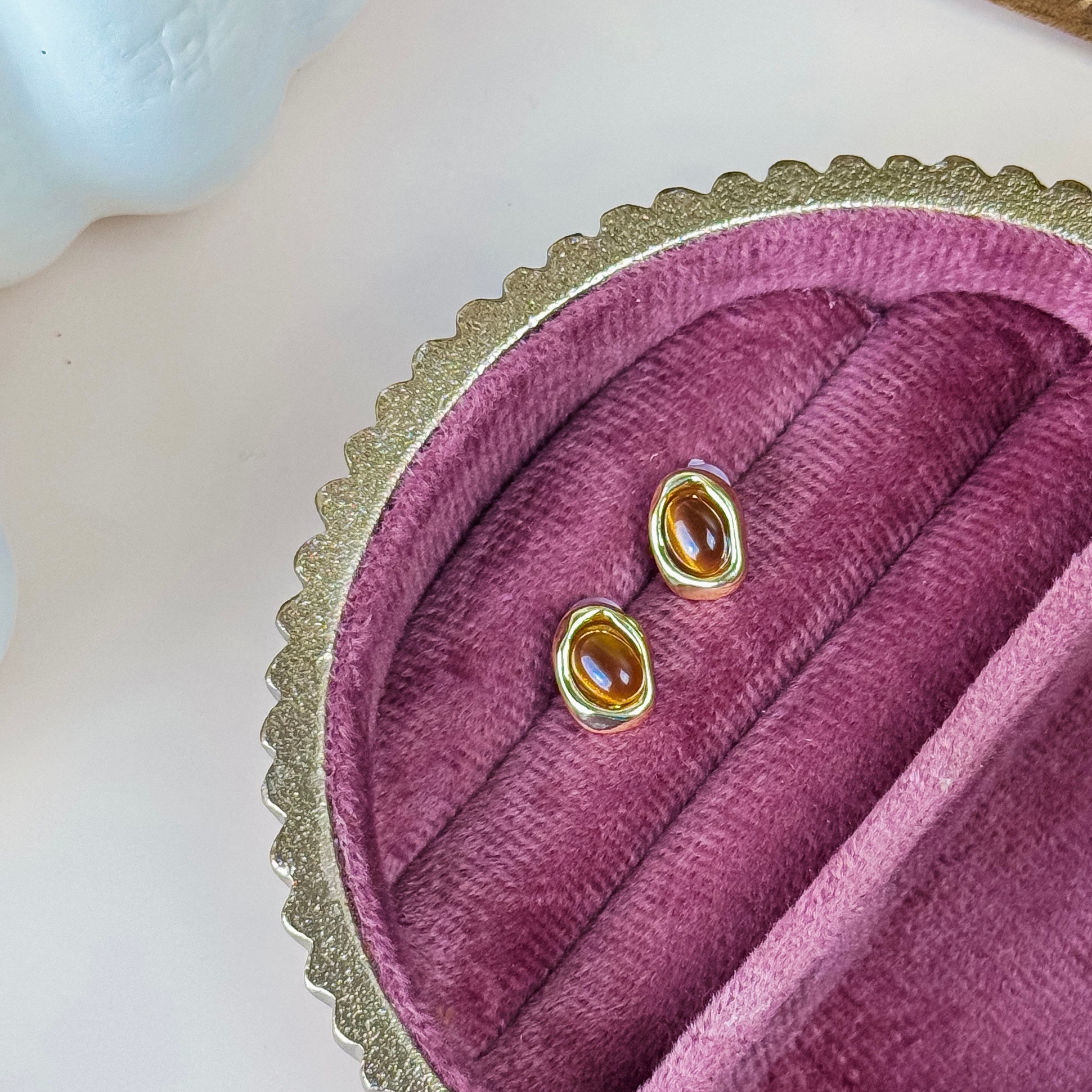 Bold and earthy, the Gold Tiger’s Eye Stud Earrings feature polished tiger’s eye stones set in organic gold frames. With their natural golden-brown glow and modern shape, these studs bring both grounding energy and effortless style to your look.