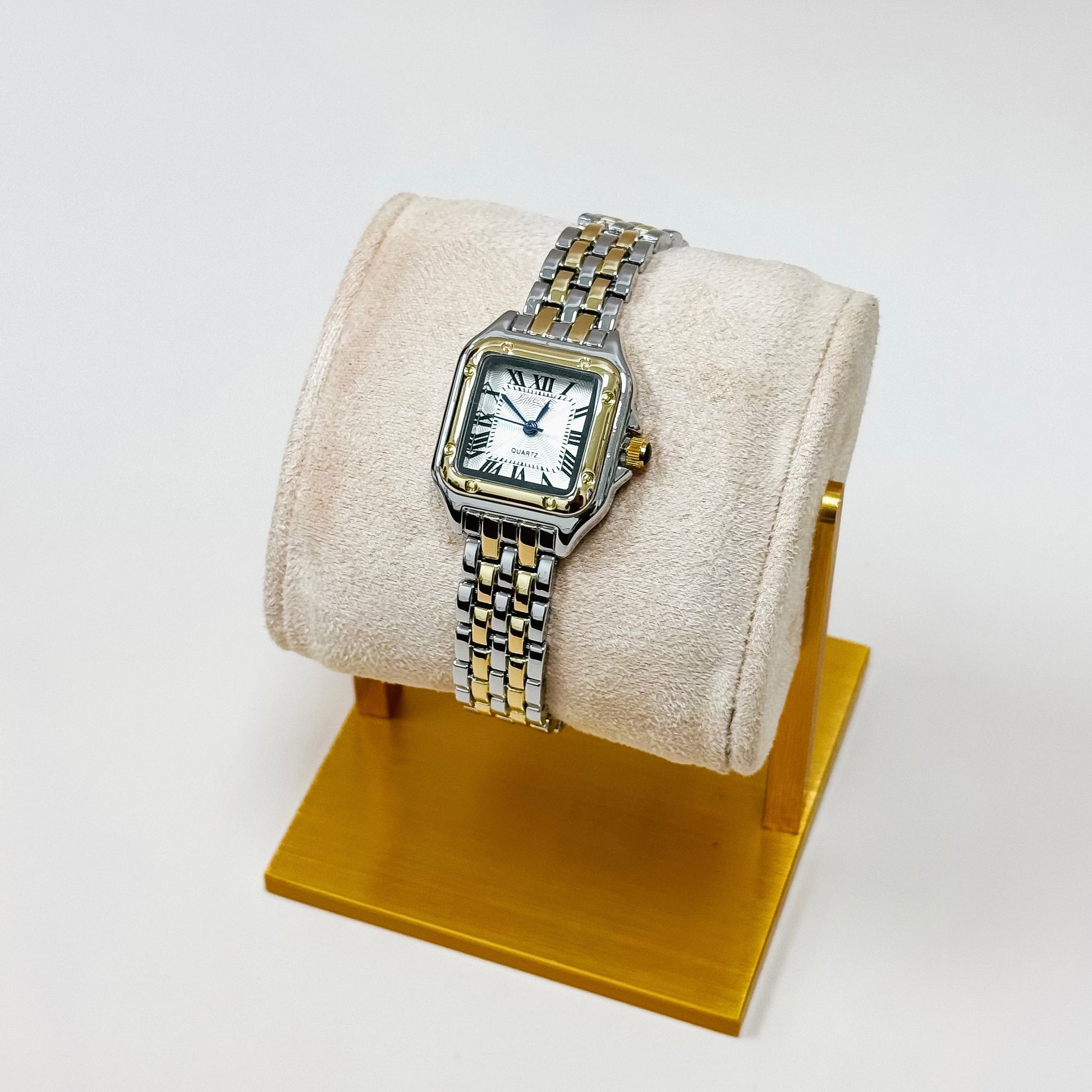 The Evergold Two-Tone Rectangle Watch blends polished gold and silver tones with a sleek rectangular face for a refined, everyday luxury look. Designed to complement any jewelry stack, this watch offers versatility, elegance, and classic appeal all in one piece.