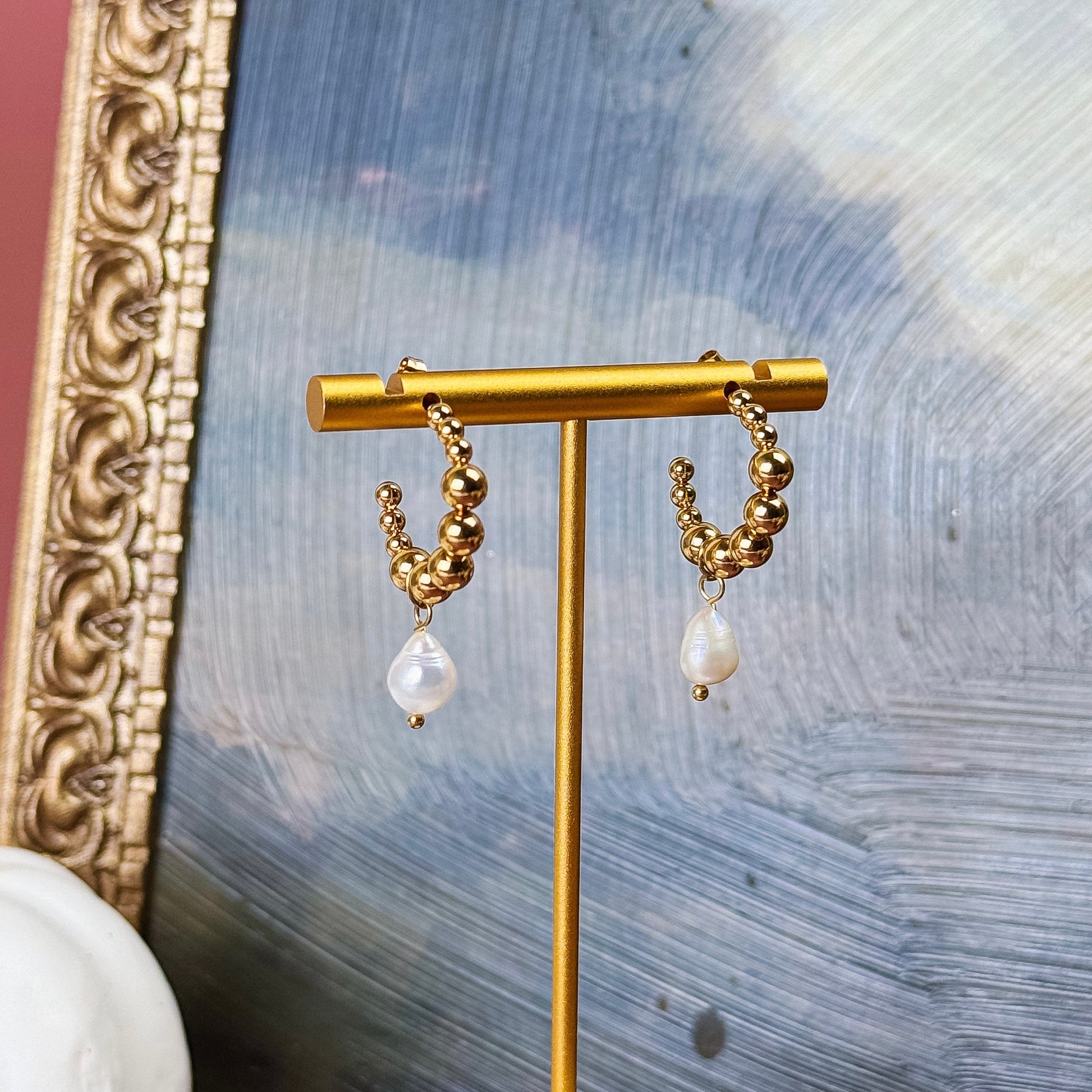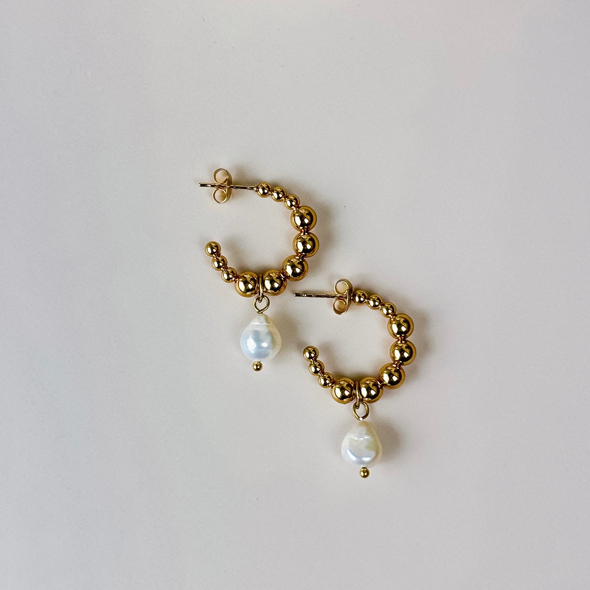 A modern take on the classic hoop. The Isla Hoops feature a bold beaded silhouette paired with a natural pearl drop for the perfect balance of structure and softness. Lightweight and effortless for everyday or elevated styling.