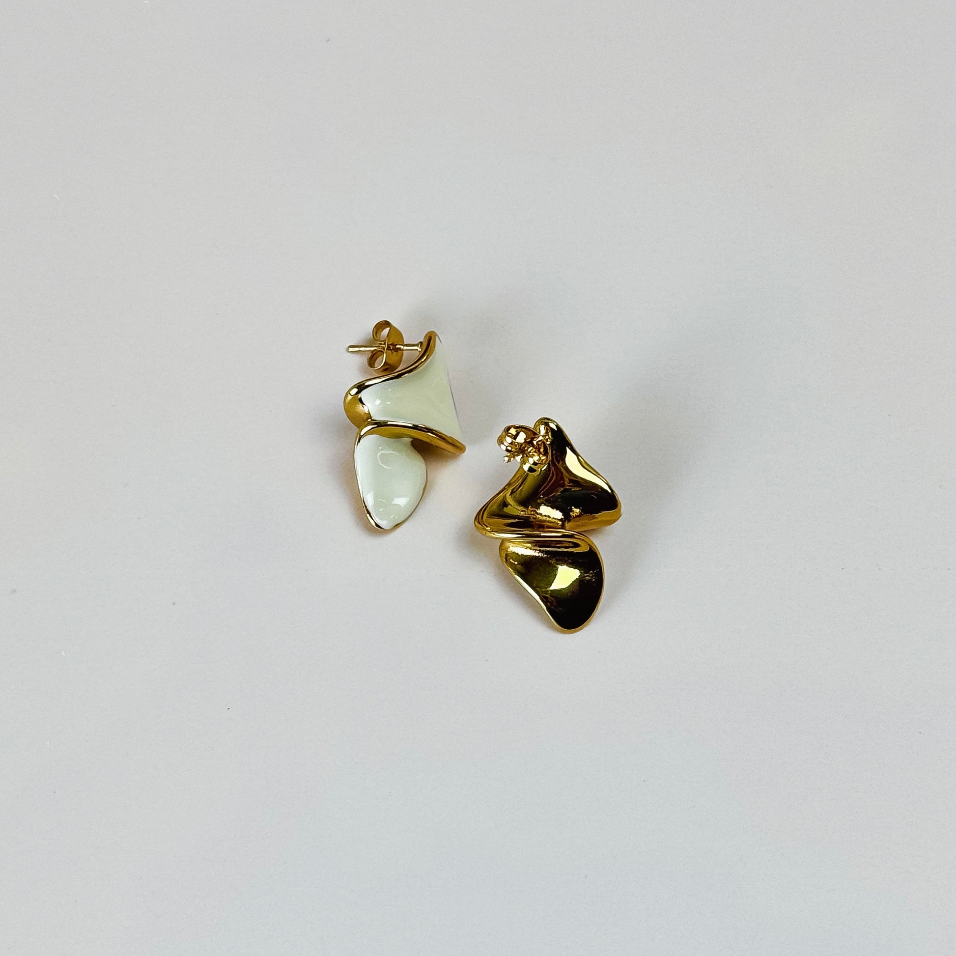 Artful and effortlessly bold. The Sway Earrings feature soft sculptural curves in a two-tone enamel and gold finish, offering a refined statement that moves with you. Available in classic ivory or sleek black to suit any mood or moment.